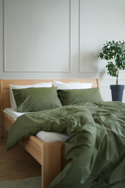 Постільна білизна з резинкою Оливка + Білий, ранфорс Евро розмір, наволочки 70/70