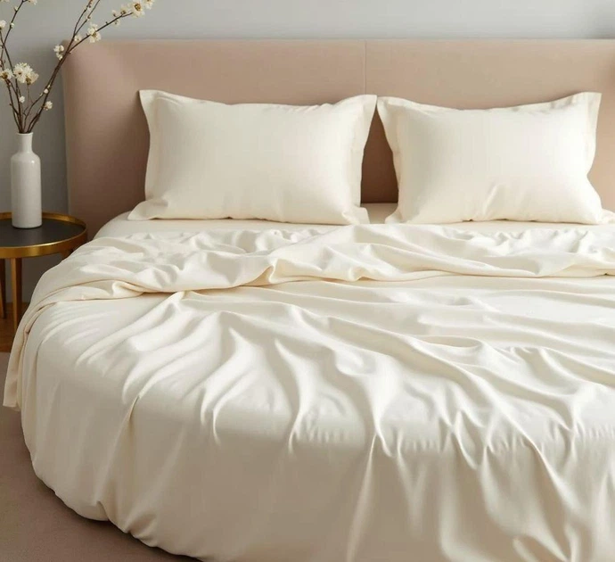 Постільний комплект на кругле ліжко діаметр до 240 Almira Mix Преміум Сатин Шампань Сімейний