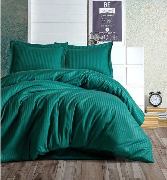 Комплект постільної білизни страйп-сатин PAGOTI Maestro смарагдовий (king size/70х70)