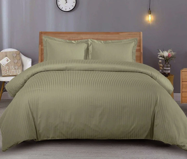 Комплект постільної білизни MERISET 120090627 Сімейний на резинці Сатин страйп Оливковий