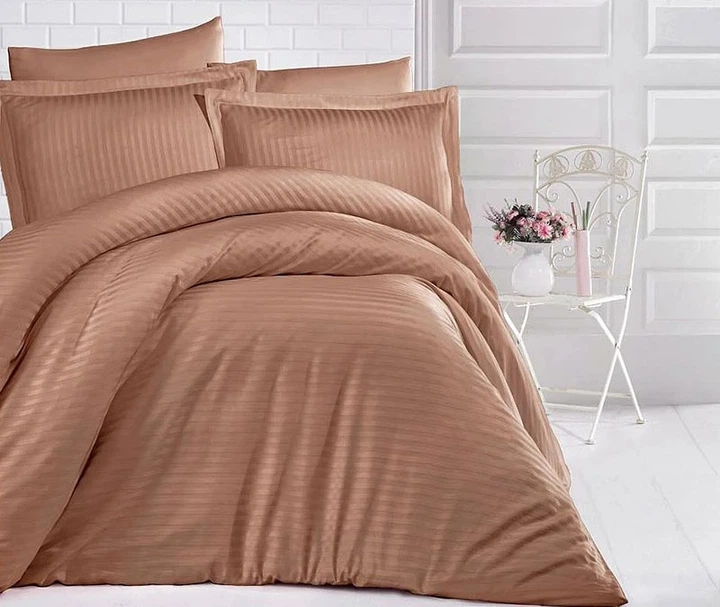 Комплект постільної білизни MERISET 120089876 Сімейний на резинці Сатин страйп Кавовий