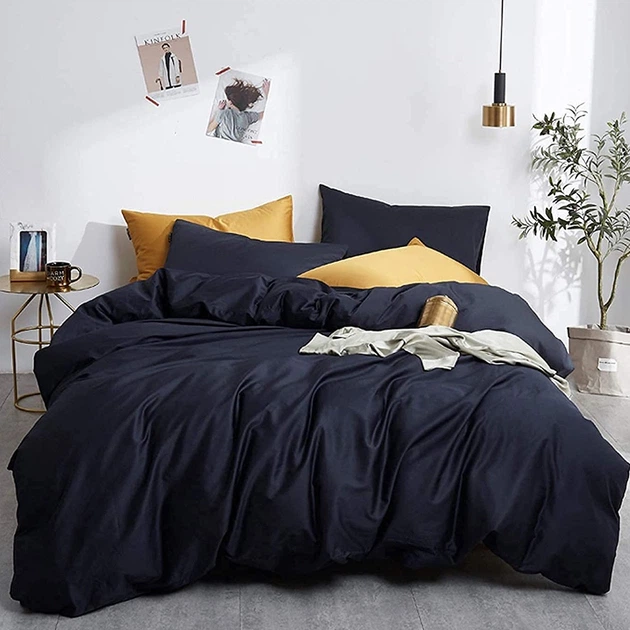 Комплект постільної білизни MERISET 120091249 Сімейний на резинці Сатин однотон Фіолетовий, Антрацит