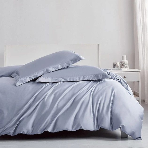 Комплект постільної білизни MERISET 120090539 Сімейний на резинці Сатин однотон Блакитний