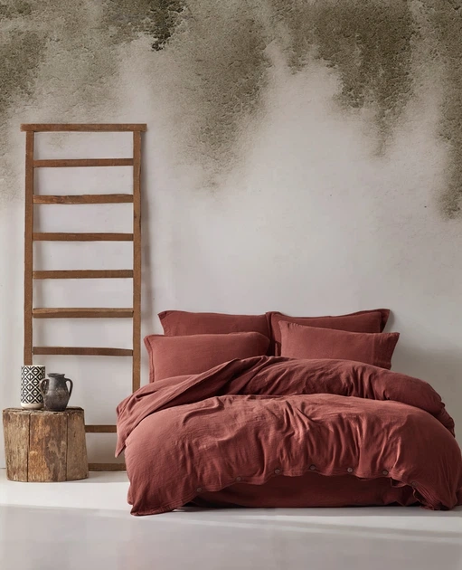 Комплект постільної білизни Buldans 10010 Євро Льон + бавовна Бордове 50x70