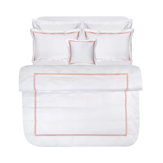 Комплект постільної білизни MieCasa 10256 Євро Сатін Білий з кораловим 50x70