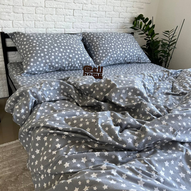 Комплект постільної білизни Ell Home (турецька фланель) Зорі сірі СІМЕЙНИЙ Б7