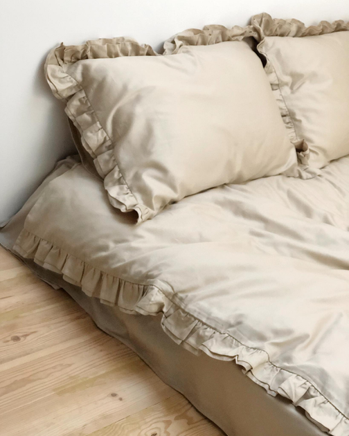Комплект постільної білизни Cozy з рюшами лате Півтораспальний 150*200 см, простирадло 140*200*20 на резинці