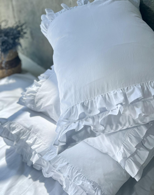 Комплект постільної білизни полуторний з рюшами 155х215 см варена бавовна White Dream Білий (2003/2wR)