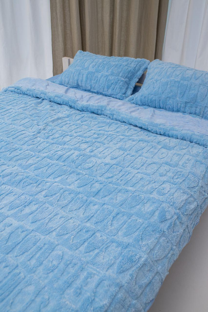Постільна білизна з резинкою Голубий, плюш Сімейний розмір, наволочки 70/70
