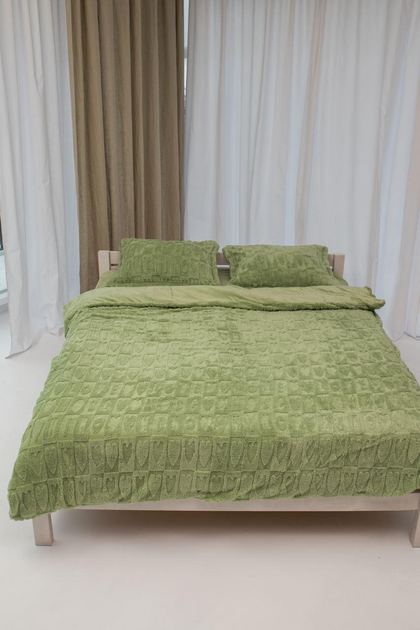 Постільна білизна з резинкою Зелений, плюш Сімейний розмір, наволочки 70/70
