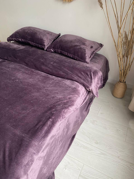 Постільна білизна з резинкою Баклажановий, плюш Сімейний розмір, наволочки 50/70