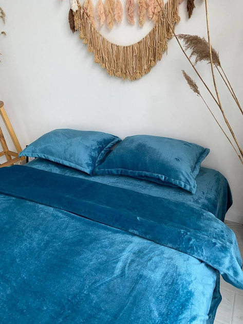 Постільна білизна з резинкою Бірюзовий, плюш Сімейний розмір, наволочки 70/70