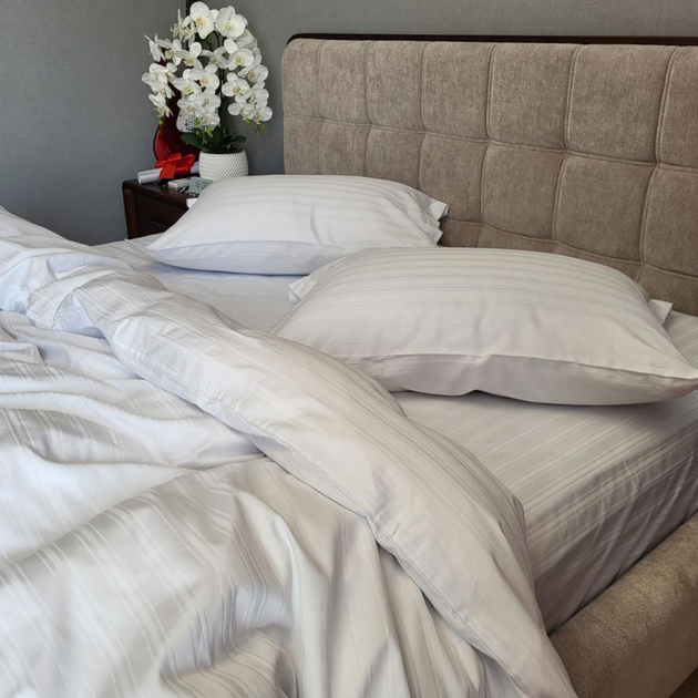 Постільна білизна Мульти страйп сатин білий, PREMIUM Евро розмір, наволочки 70/70