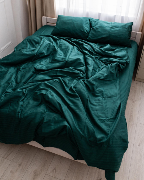 Постільна білизна Зелений страйп сатин PREMIUM Евро розмір, наволочки 70/70