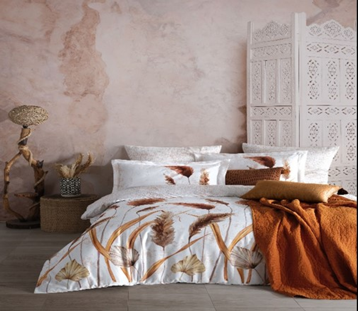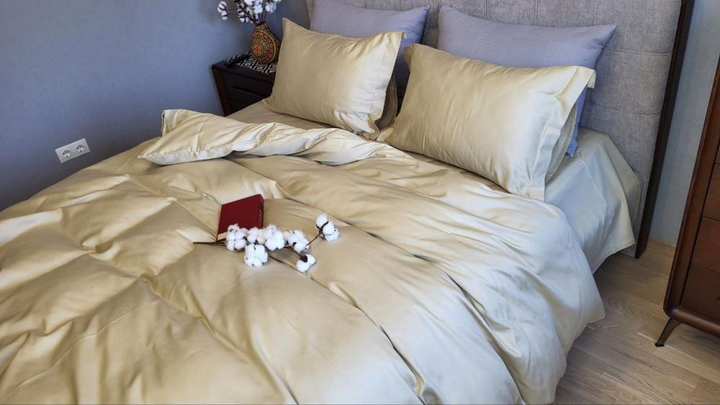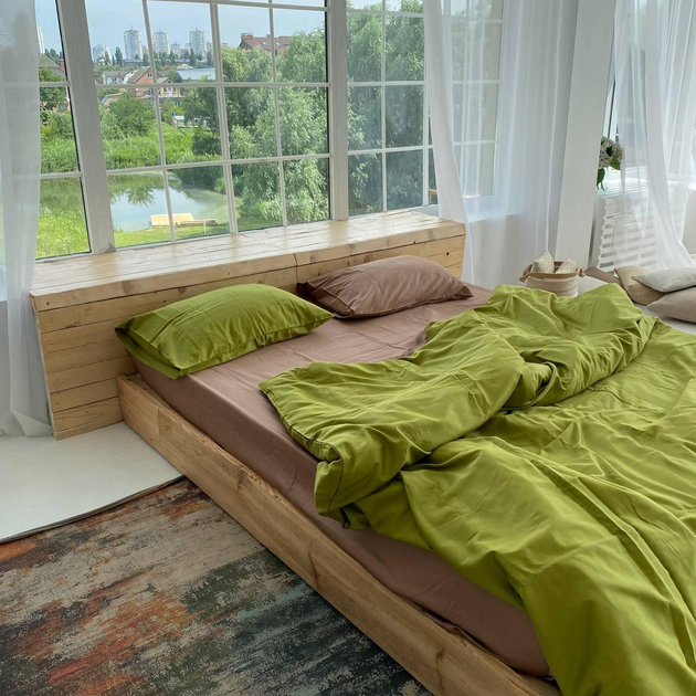 Постільна білизна Карамель + Олива, сатин PREMIUM Евро розмір, наволочки 70/70