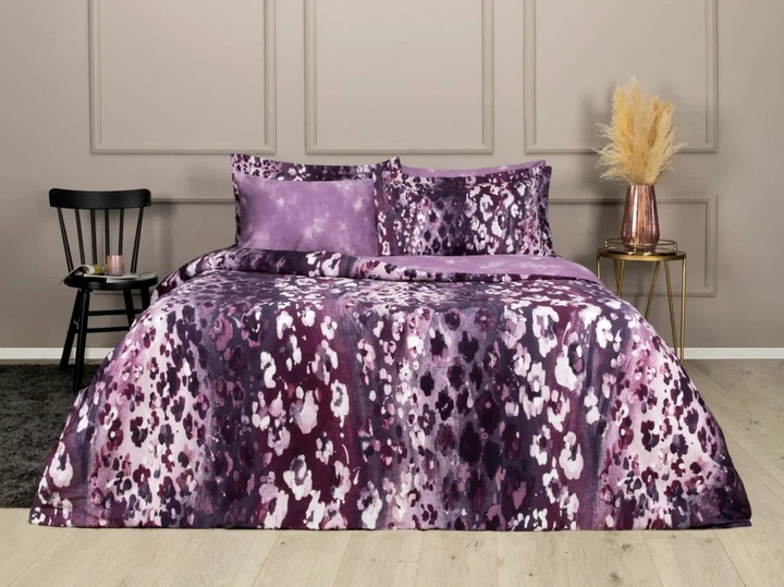 Двоспальний Євро комплект TAC Vesta Lilac Сатин-Delux 200х220 см наволочки 4 x 50х70 см