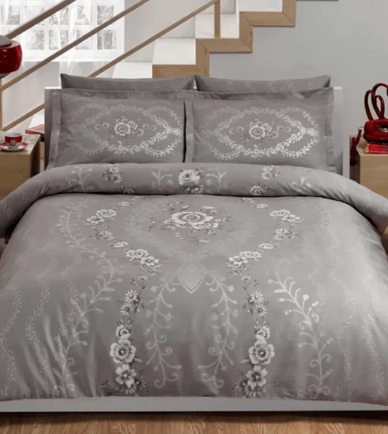Двоспальний Євро комплект TAC Mabel Grey Сатин-Delux 200х220 см наволочки 4 x 50х70 см