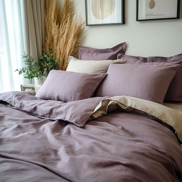 Комплект постільної білизни Almira Mix Варена Бавовна Преміум Фіалка + Беж Сімейний
