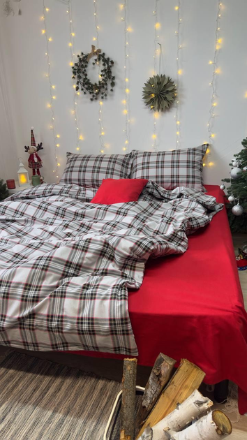 Постільна білизна тепла з гумкою Клітинка з червоним, сімейний розмір 145х215см х2шт, турецька фланель (байка), наволочки 70