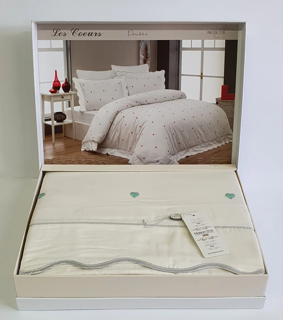 Білизна постільна Maison D'or сатин з вишивкою 200х220 Les Coeurs Ecru-Green