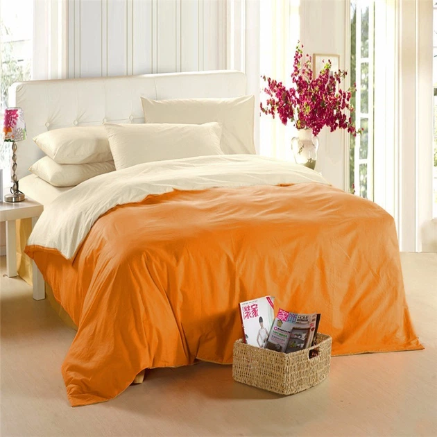 Двосторонній комплект постільної білизни Almira Mix Преміум Сатин Помаранчевий + Шампань Сімейний