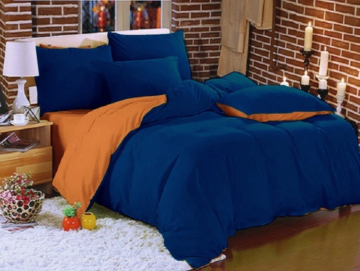 Двосторонній комплект постільної білизни Almira Mix Преміум Сатин Синій + Помаранчевий Сімейний