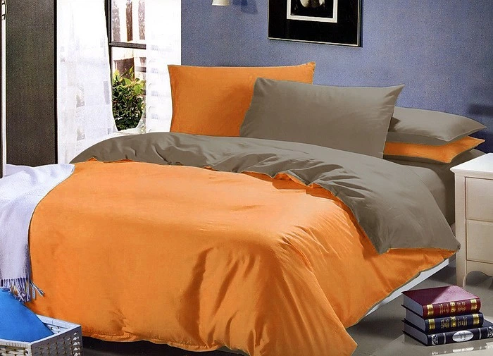Двосторонній комплект постільної білизни Almira Mix Преміум Сатин Коричневий + Помаранчевий Сімейний