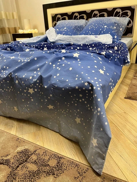 Постільна білизна бавовняна Зірки Півтораспальна 150 x 220 Бязь Синя 50 х 70
