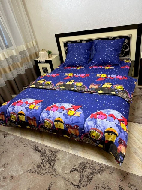 Постільна білизна бавовняна Роблекс Півтораспальна 150 x 220 Бязь Синя 70 х 70