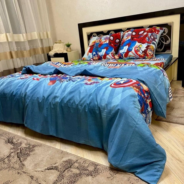Постільна білизна бавовняна Марвел Півтораспальна 150 x 220 Бязь Блакитна 50 х 70