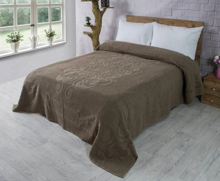 Махрове бавовняне жаккардове простирадло 150х220 Полуторний Zeron AWDAR Коричневий
