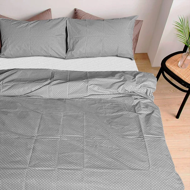 Комплект постільної білизни Zastelli Полуторний 145х210 см 41 білий горох/74 сірий горох бязь Сірий (2100000277729)
