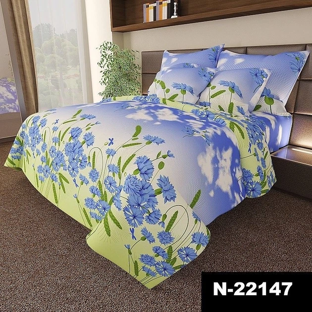 Комплект постільної білизни Королева Ночі Бязь 175х215 Двоспальний Квіти на блакитному 893