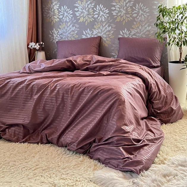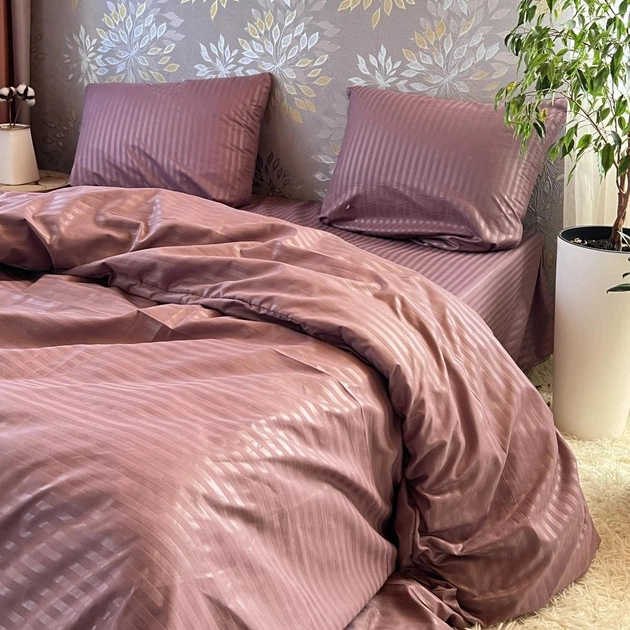 Постільна білизна бавовняна Смужка Півтораспальна 150 х 215 Страйп сатин мікрофібра 70 x 70 Сливка