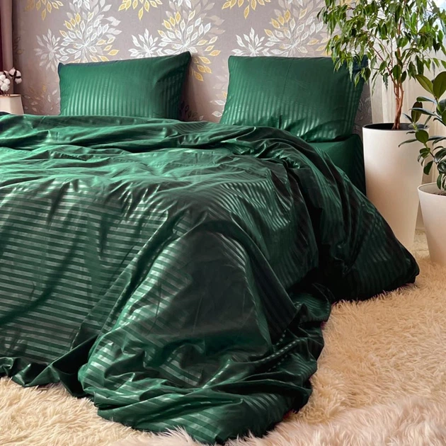 Постільна білизна бавовняна Візерунки Півтораспальна 200 х 215 Страйп сатин мікрофібра 70 x 70 Зелена