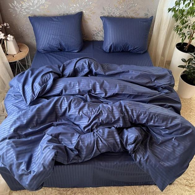 Постільна білизна бавовняна Візерунки Півтораспальна 200 х 215 Страйп сатин мікрофібра 70 x 70 Синя