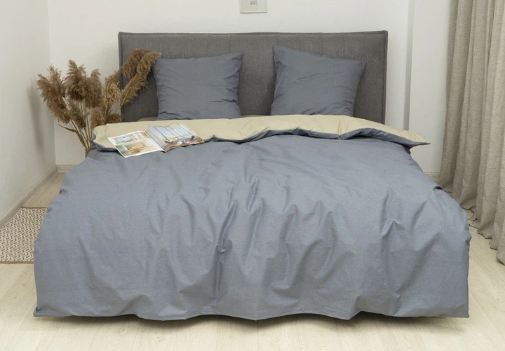 Постільна білизна бавовняна Візерунки Півтораспальна 200 х 215 Страйп сатин мікрофібра 50 x 70 Сіра