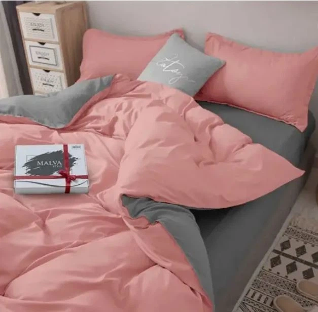 Двоспальний комплект постільної білизни Мальва Бязь рожево-сірий 180x220 (Н0348)
