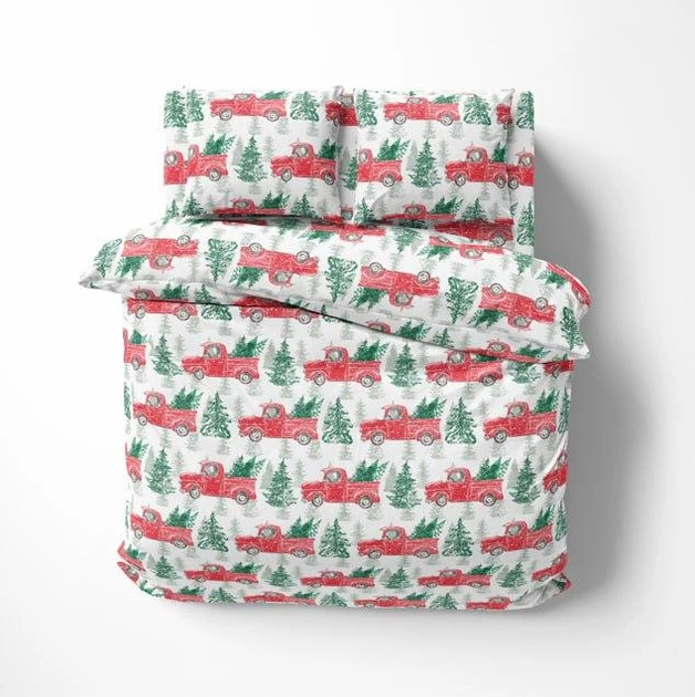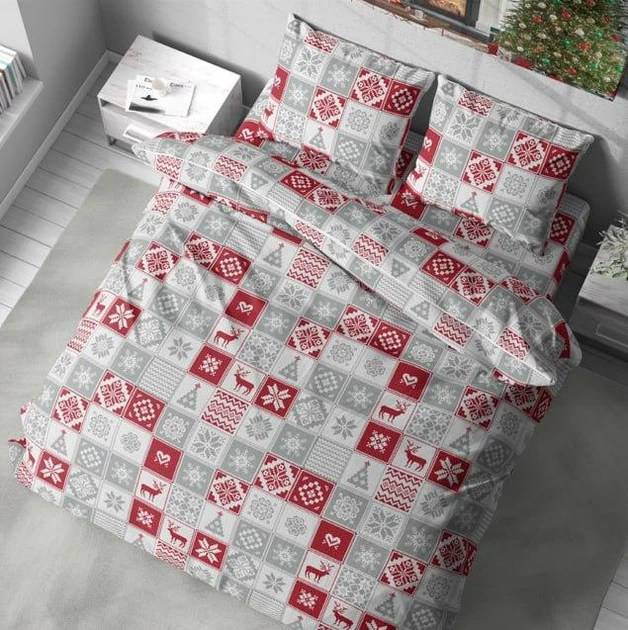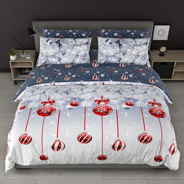 Комплект постільної білизни новорічний принт наволочки 50х70 см Полуторний Сірий (Д-P-0173)