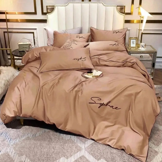 Постільна білизна Євро KOLOCO Sophae сатин (40963) Світло-коричневий