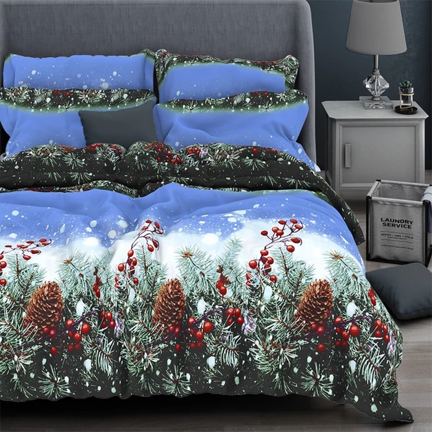 Комплект постільної білизни новорічний полуторний Бязь Голд Ananasko 517566