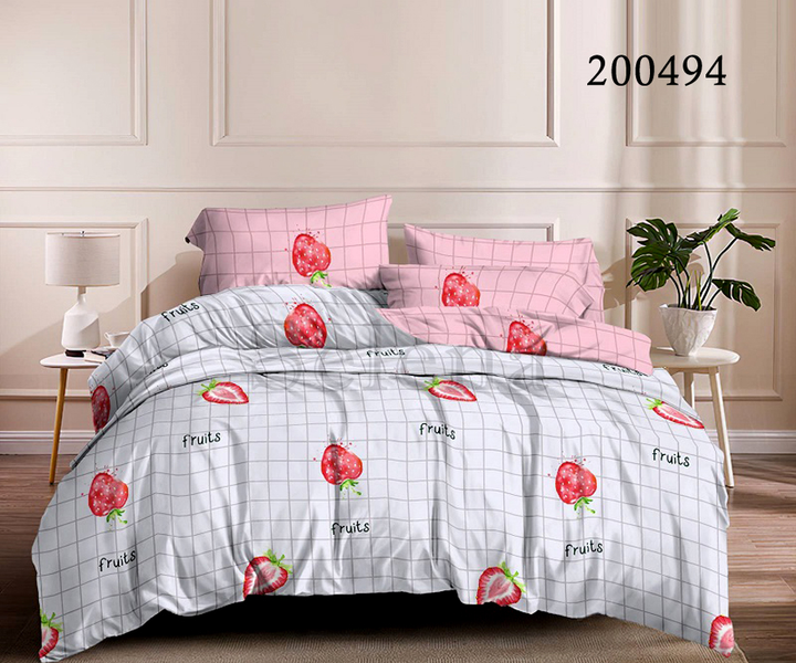 Комплект постільної білизни Selena Ранфорс Полунички і клітини євро 200494