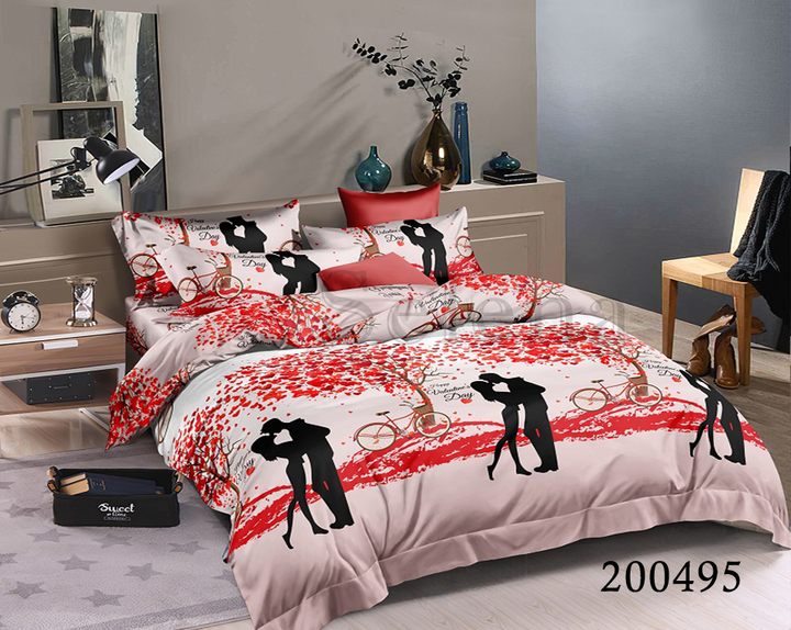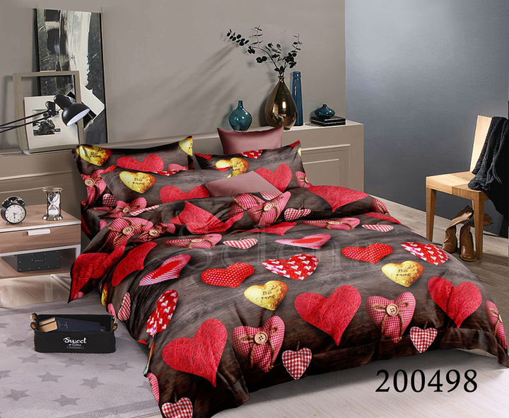 Комплект постільної білизни Selena Ранфорс Романтичні сердечка євро 200498