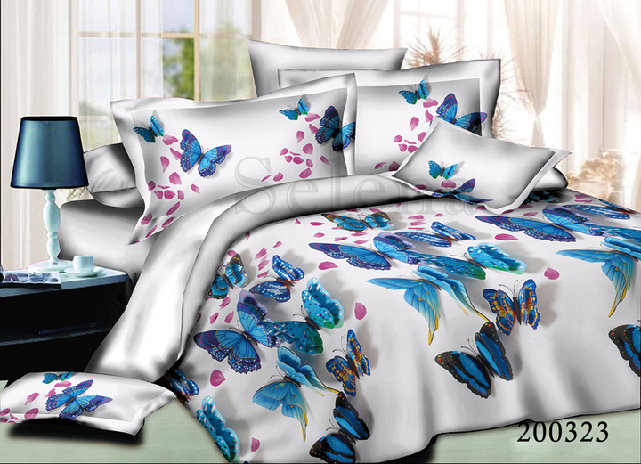 Комплект постільної білизни Selena Ранфорс Блакитні метелики євро 200323