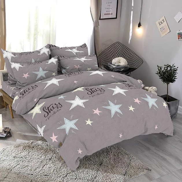 Комплект постільної білизни Королева Ночі Бязь 145х215 Полуторний Кольорові зірки на сірому 1169-1