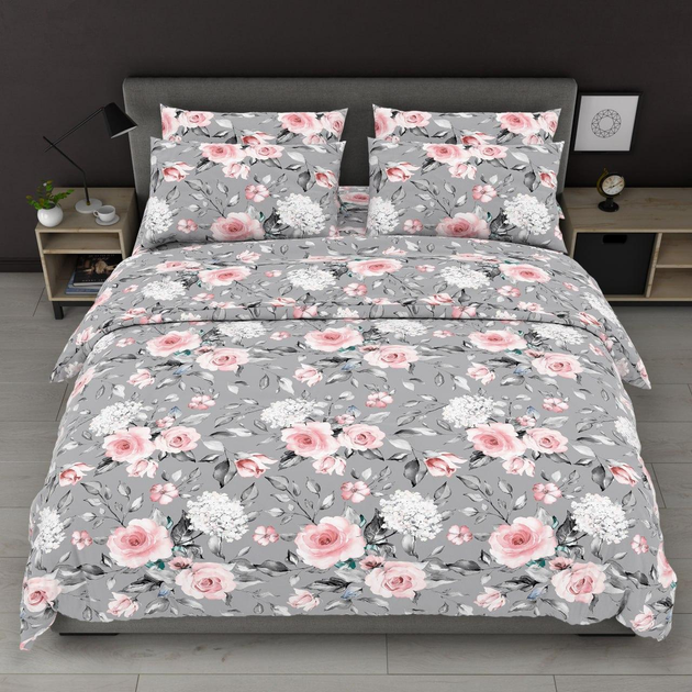 Комплект постільної білизни Королева Ночі Бязь 145х215 Полуторний Квіти на сірому 0262-1