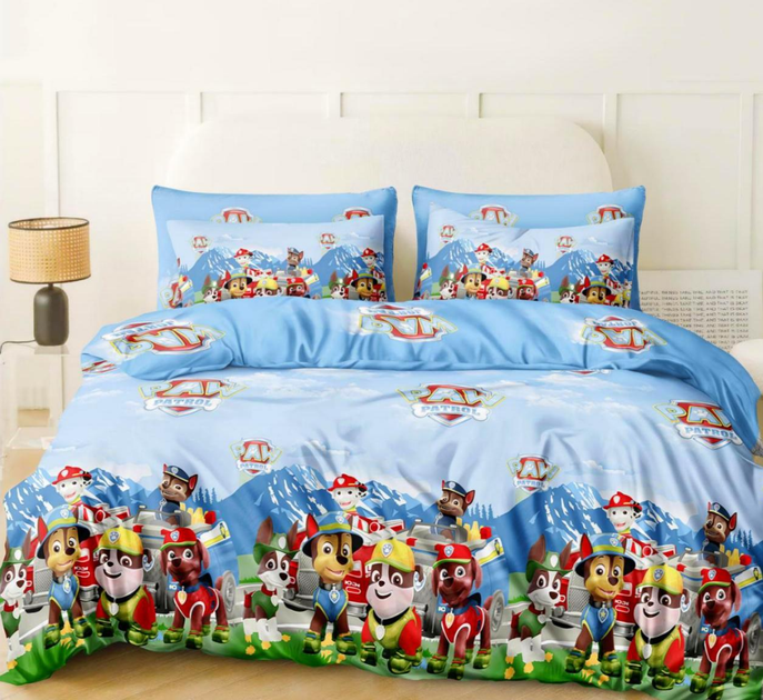 Комплект постільної білизни Полуторний бязь голд люкс 160х220 см Щенячий патруль синій