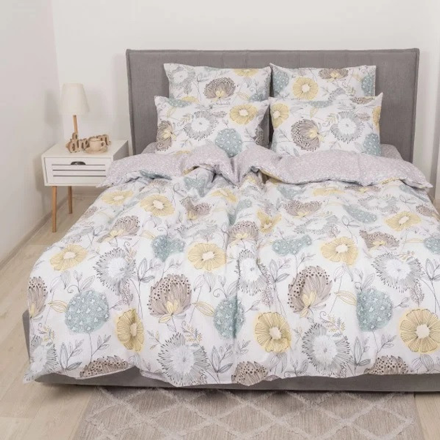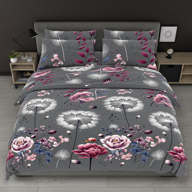 Комплект постільної білизни Королева Ночі Бязь 145х215 Полуторний Кульбаби на сірому 0514-1