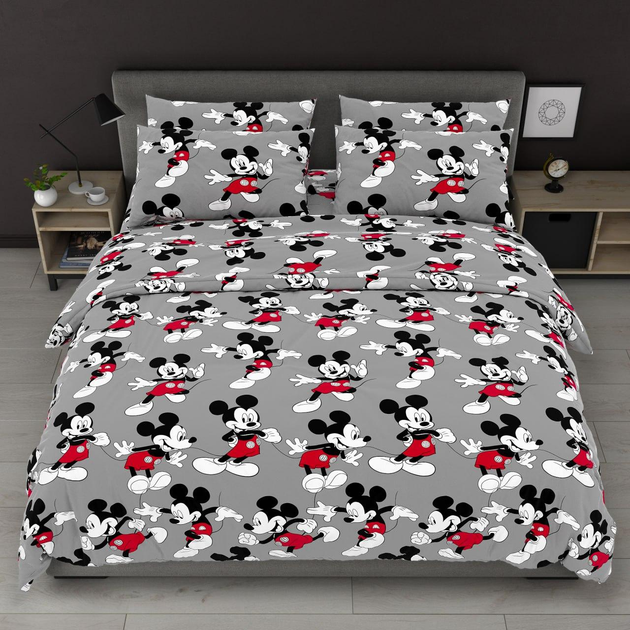 Комплект постільної білизни Королева Ночі Бязь 145х215 Полуторний Мікі Маус на сірому 0258-1