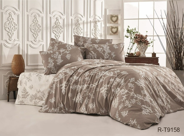 Комплект постельного белья с компаньоном Tag Tekstil ранфорс 100 хлопок 1.5 сп. Перо (R-T9234)